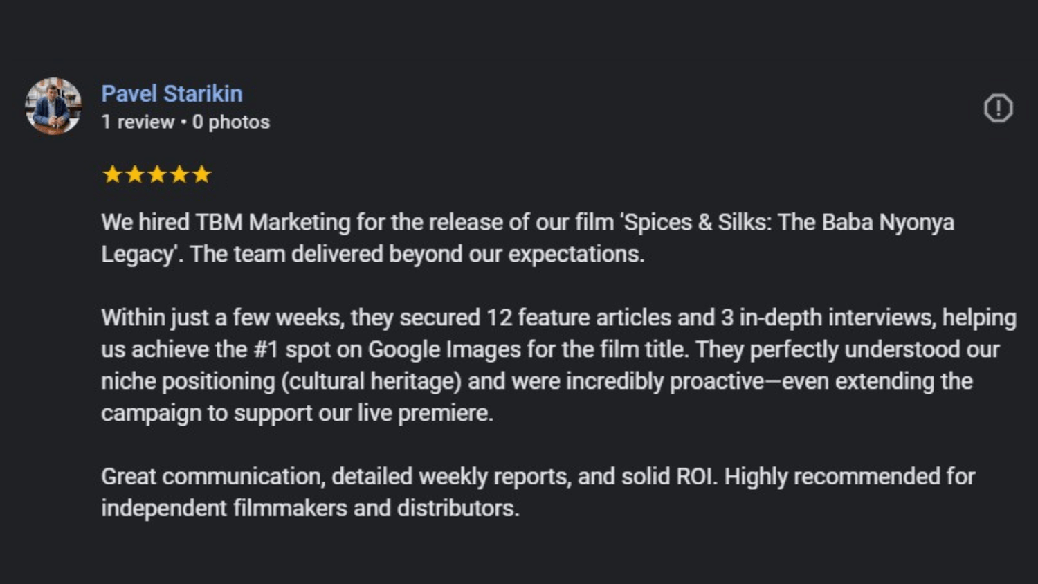 The Film PR Package secures guaranteed published coverage (based on our wide network of movie sites) and gives you a professional press asset that continues working for you long after the campaign ends.